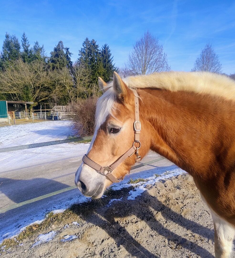 Sport. 13 år gammalt renrasigt Haflinger-sto för dressyr och hoppning - Nube har varit i min ägo i 10 år. Hon är utbildad i dressyr på en solid nybörjarnivå mot elementär (L) och är också mycket glad över att slutföra en avancerad (E) kurs.