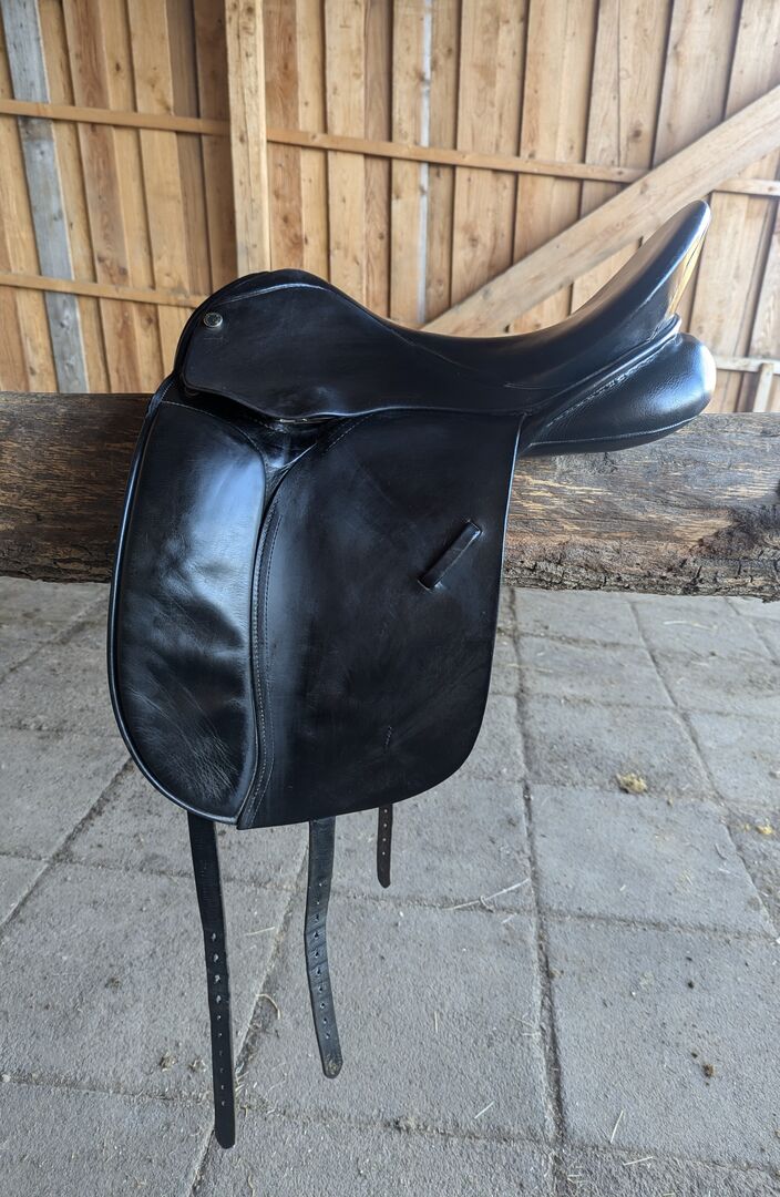 Spring Tree 17 tums dressyrsadel - Jag säljer min Spring Tree 17 tums dressyrsadel eftersom den tyvärr inte längre passar mitt sto. Sadeln visar synliga tecken på användning och är mjukt vadderad. Sadeln satt tidigare på en smal tysk ridhäst.