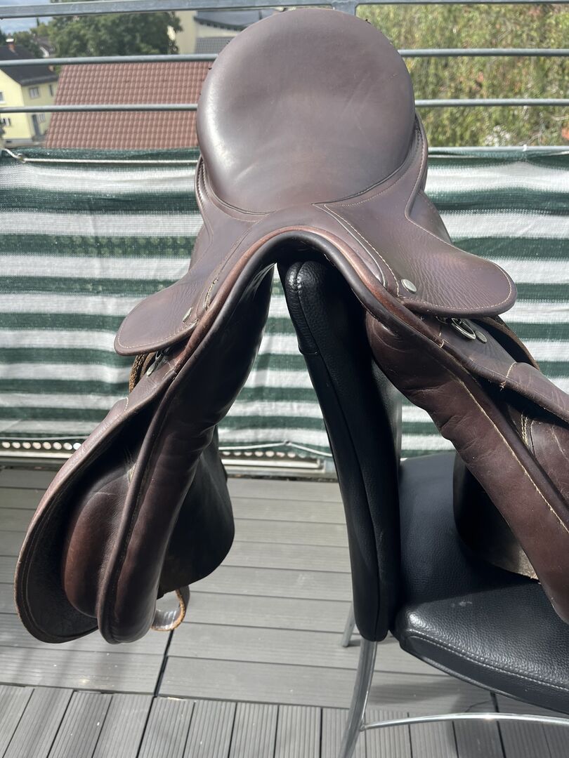 Springsattel/ Vielseitigitigkeitssattel gebraucht dunkelbraun, 17 Zoll - Jag tittar på min 17-zolls dunkelbraun Springsattel. Den är mycket bekväm och jag har använt den till Vielseitigkeitsreiten. Steigbügelriemen är i pris med inbegriffen. Han har Loesdau-märket. Den exakta modellen kan jag tyvärr inte säga, eftersom jag själv har köpt den. Vid intresse gärna anmäla.