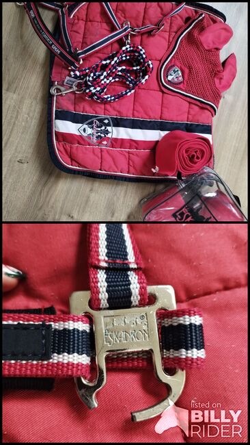 Squadron Set WB - Begagnat skick. Grimman har tyvärr en spricka på vänster spänne. Detta påverkar dock inte funktionen. I övrigt är allt i gott begagnat skick. Flugöron WB Bandage WB Sadelkudde WB Halter. WB Rep