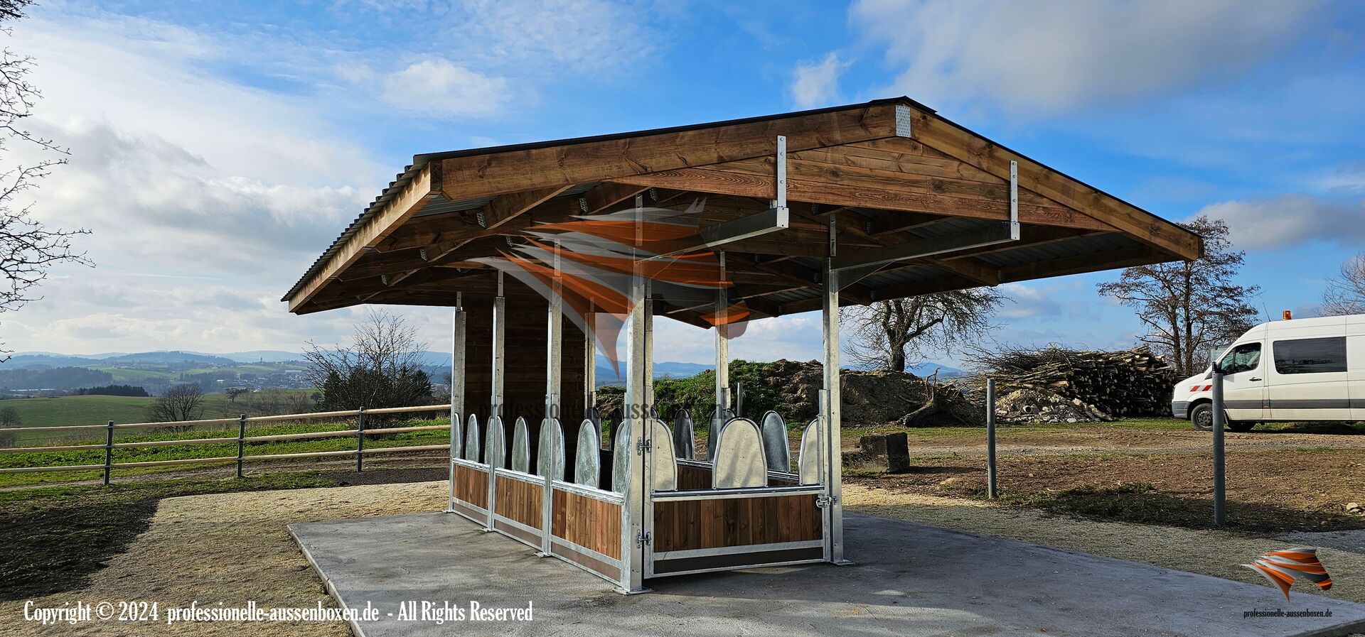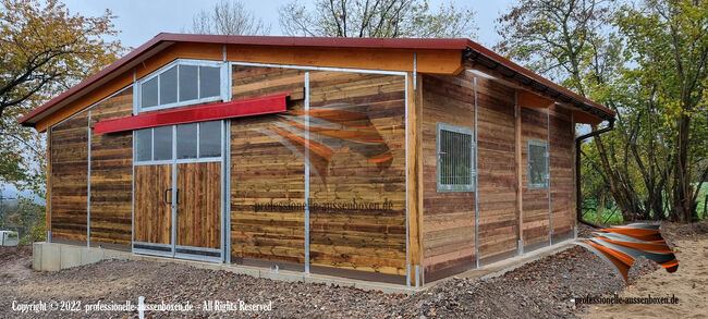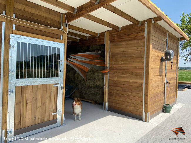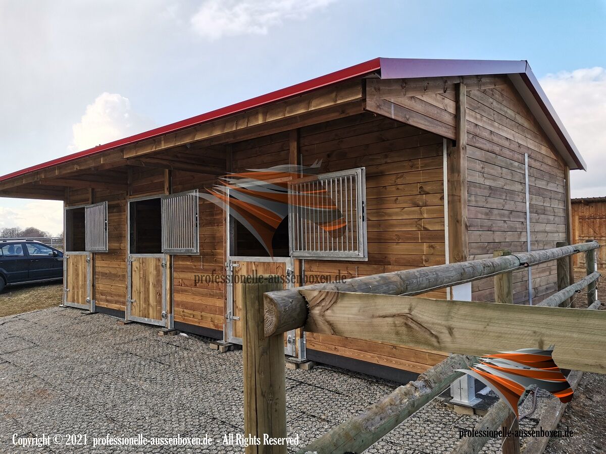 Stabil konstruktion Perfekt häststall, utomhusboxar & öppet stall - Köp hästboxar säkert - Webb: www.professionelle-aussenboxen.de