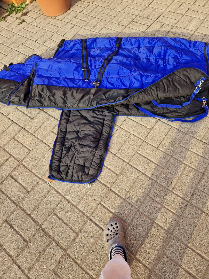Stabilt skydd 135 - Jag säljer en stallfilt 100g. Den har ett magskydd. Den är 135 cm. Filten rengörs. Men det finns fortfarande hästhår på den. Filten är hel. Ett spänne är trasigt men kan bytas utan problem. Jag skulle lägga till en liten present.