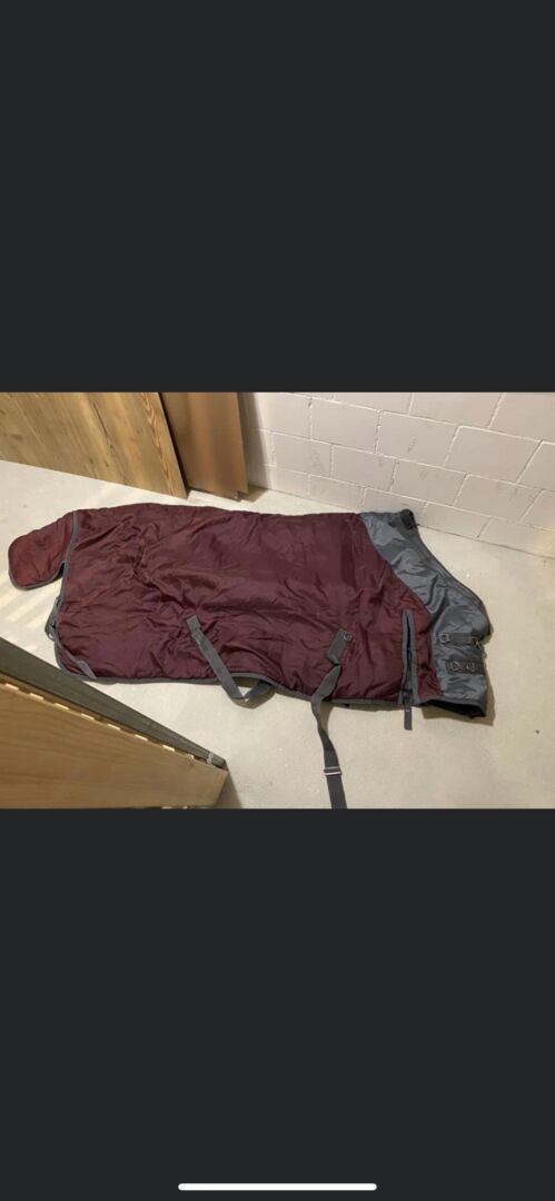 Stalldecke, 145cm, Bordeaux mit grauen Details.