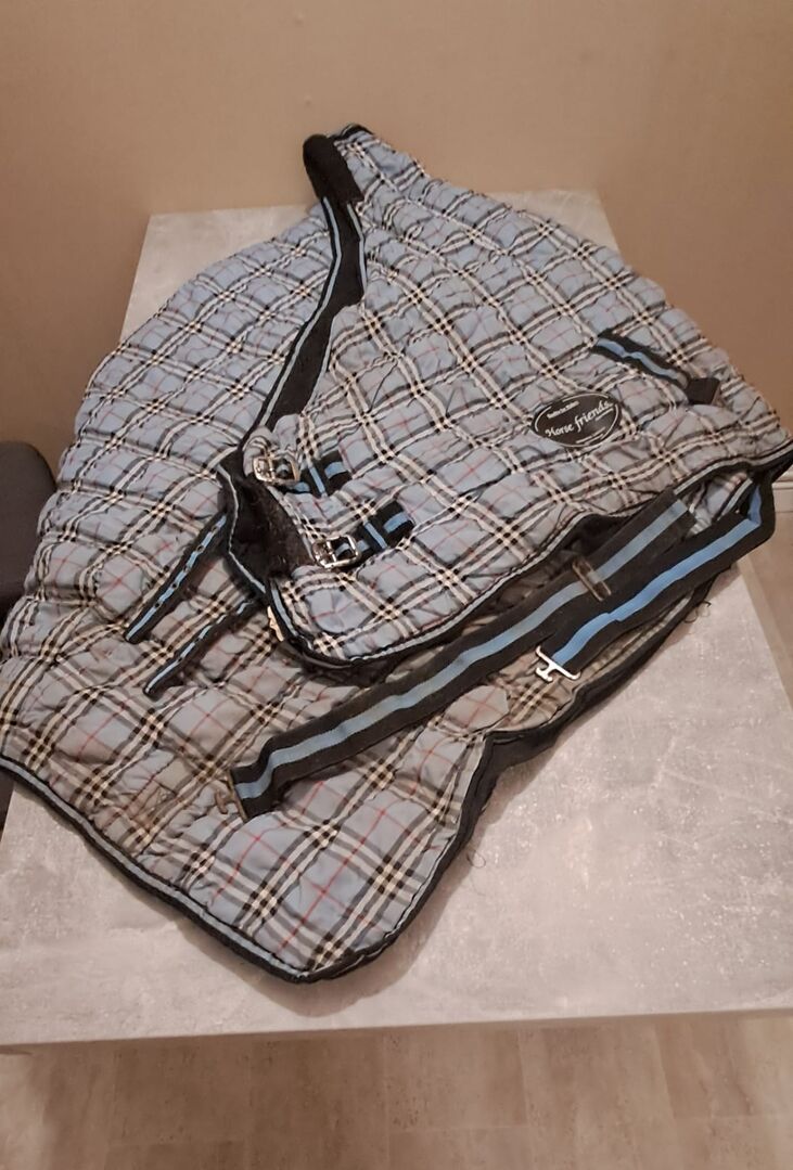 Stabilt skydd - Blårutig stallmatta, fylld. Storlek 145.