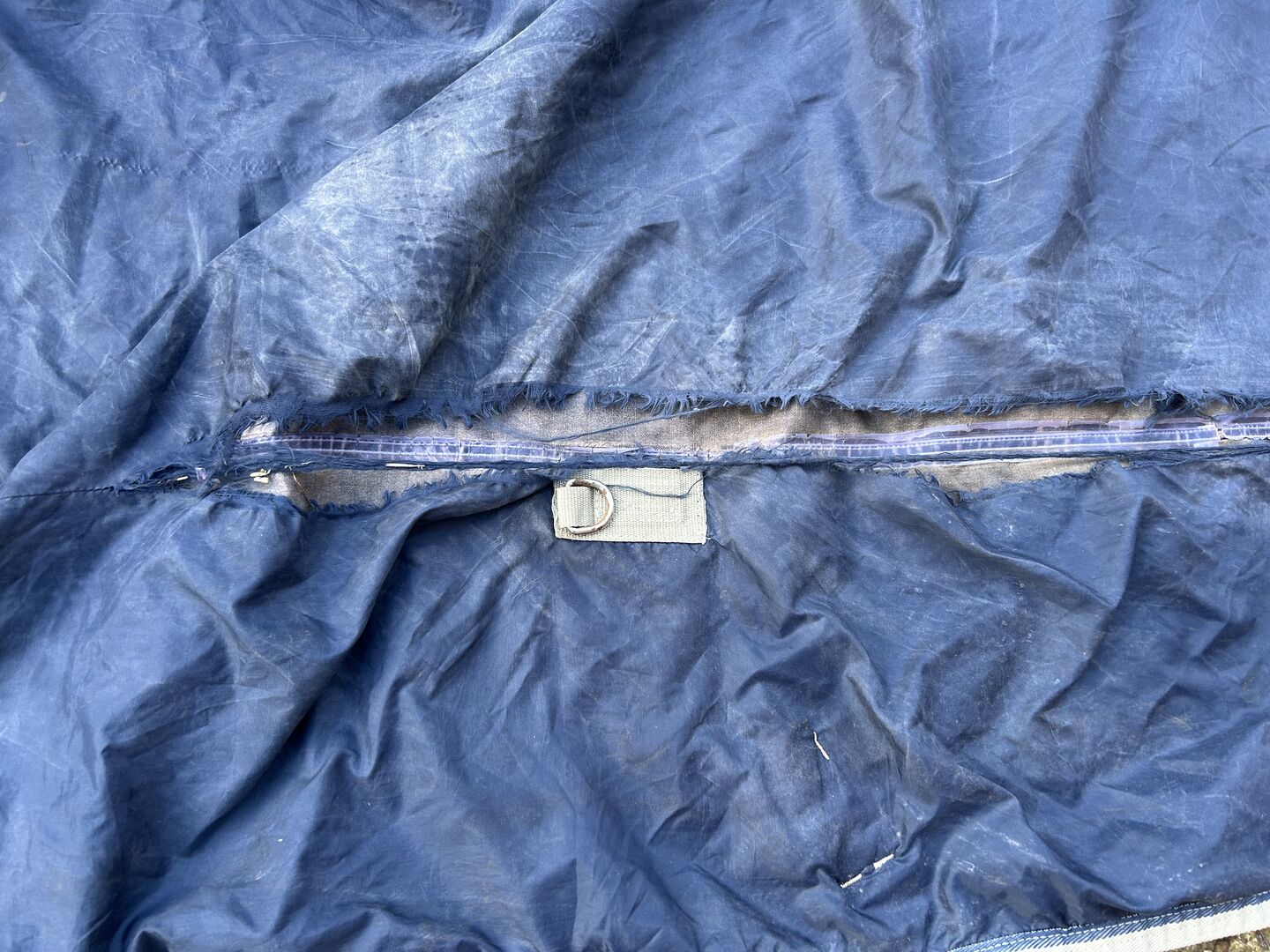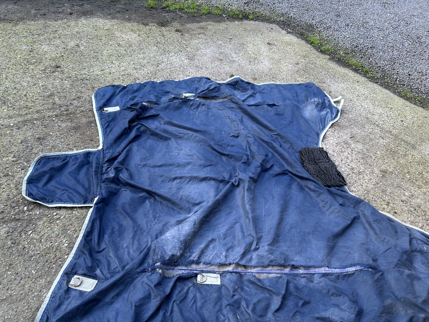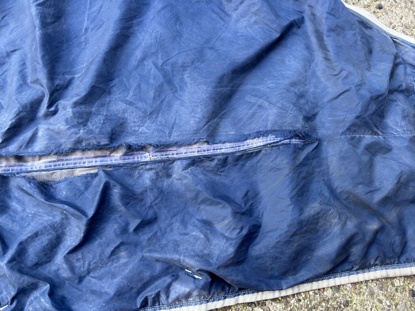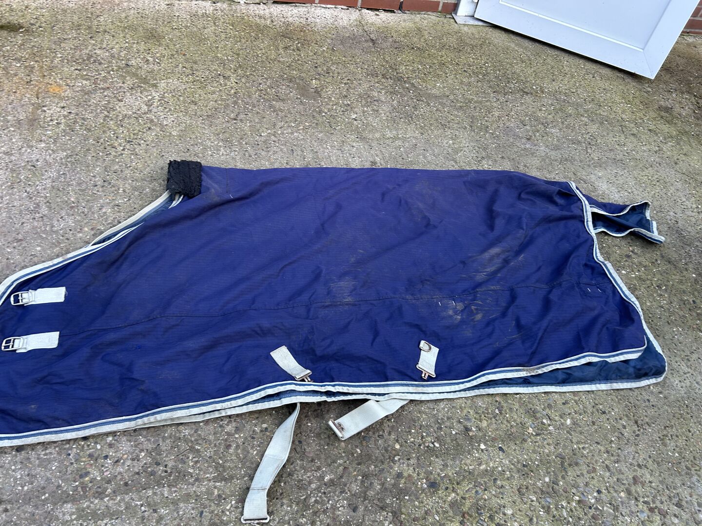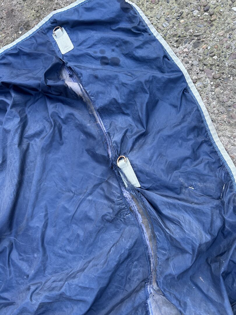 Stabilt skydd, inte regntätt - Jag säljer detta stalltäcke jag köpte det själv för ungefär en månad sedan för min häst, eftersom det är i det öppna stallet behöver jag det inte längre. Jag trodde att det var regnsäkert men det var det inte. Det är också sönderrivet på sidorna och har ingen svans och inte heller några benremmar, dessutom är en krok på en magrem böjd och rostar täcket rengörs fortfarande men är väl stängt Storlek: 145cm.