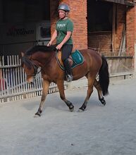 Han har starka nerver, är inte nervös och täcker större hästar väl. På grund av sin ålder kommer han naturligtvis inte bara att ges till barn etc.... han är ännu inte en pålitlig häst.... men så som jag har upplevt honom hittills visar han de allra bästa förutsättningarna för att bli en riktigt bra pålitlig ponny.