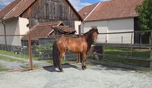 Stark nervös ung ponnyvalack! - En exceptionell ponnyvalack med en nuvarande stockmas på ca. 140. Han är 3 år ung och vi har precis börjat arbeta med honom regelbundet. Han visade riktigt bra uppförande redan från början. Han går överallt, är villig att lära sig och lär sig också snabbt. Jag kunde redan montera honom ensam utan hjälp eller hålla honom andra gången.....er är mjuk i munnen och har redan lärt sig alla 3 gångarterna i arenan under ryttaren. Han visade ingen bockning, montering eller bockning. Oavsett om man putsar, sadlar eller något annat....er står kvar. Under ryttaren har han varit ute en gång (ensam) hittills (nuvarande status)... Absolut trafikduglig. Han känner sig också väldigt bekväm i vagnen ... det är möjligt att gå på och av på egen hand och han går av på ett kyligt sätt.