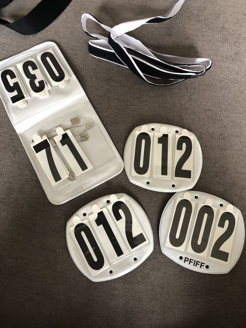 Säljer här några Tipptopp startnummer. Alla har kardborreband för enkel fastsättning. Naturligtvis finns det också kardborreband för sadelunderlaget. Även ett reservnummer.