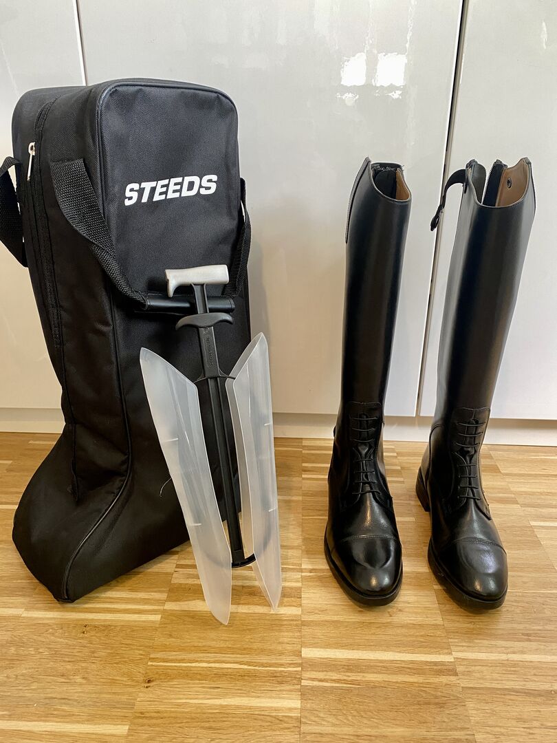 STEEDS Favourite II X-Wide ridstövlar inkl. stövelträd och stövlarväska - STEEDS ridstövlar, läder, svarta, oanvända, storlek 40 X-Wide, inklusive stövelskaft och stövlarväska, båda också från STEEDS.
