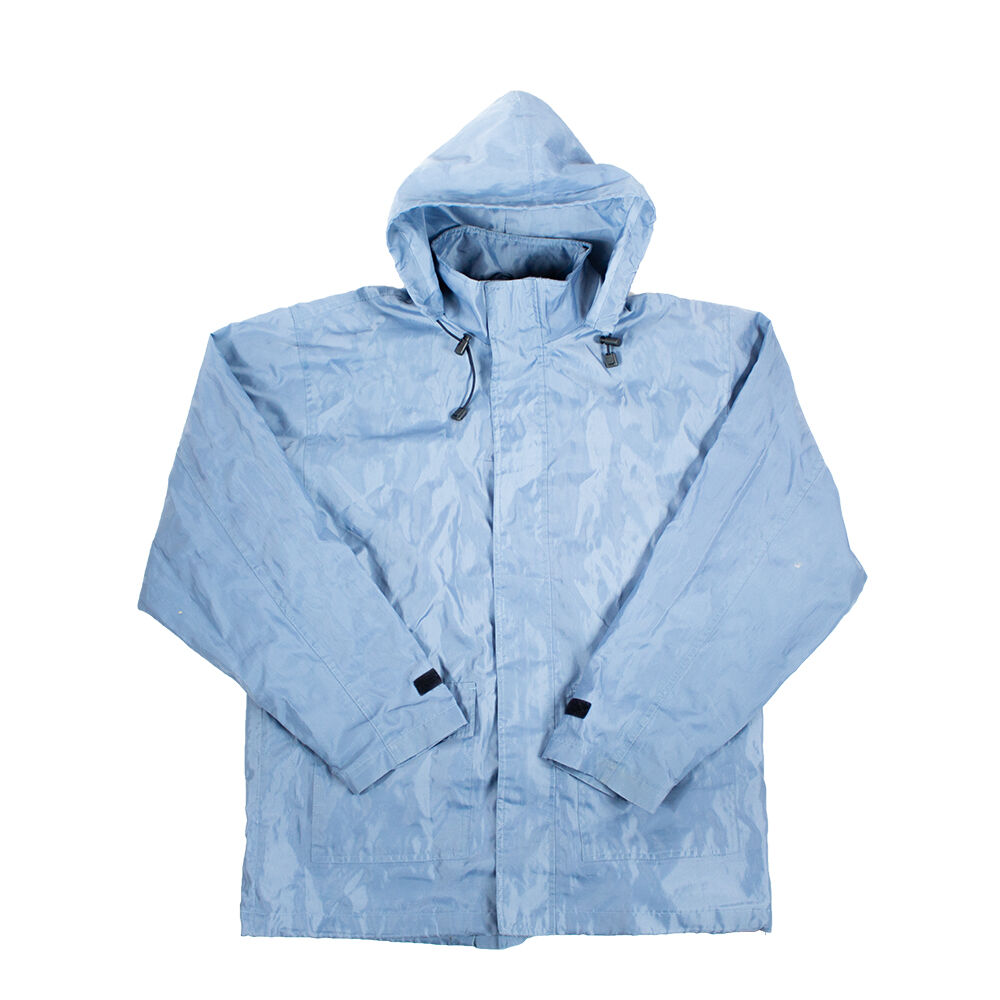Steeds regnjacka för barn ljusblå 176 - Den här praktiska regnjackan från Steeds är den perfekta följeslagaren till vardags. Den ljusblå jackan med huva håller dig torr i stallet. Den har två fickor med kardborreband på framsidan och är storlek 176. Den är i gott skick. To the seller's offerlaunch