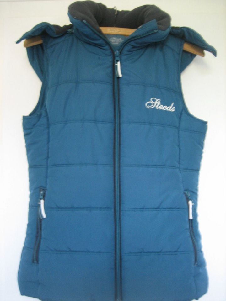 Steeds Riding Vest Quilted Felix Bühler Vest Riding - Bit denna vackra ridväst från Steeds i Patrol green till salu. Västen har en något högre krage och en avtagbar huva. Den har två flikar med dragkedja och en tvåvägsdragkedja. Västen är i absolut rent och snyggt skick utan några tecken på slitage eftersom den bara har burits några få gånger för att gå ut. Jag har aldrig burit den i stallet, så den passar även för allergiker. Från ett husdjursfritt, rökfritt hushåll Storlek XS 34