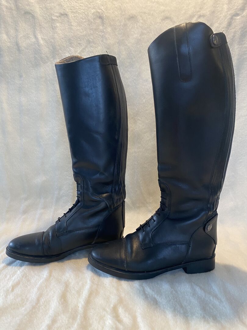 Steeds vinter ridstövlar storlek 39 - Jag säljer fodrade vinterridstövlar från 2020. De har bara burits två gånger, sedan vårdats, har ingen svettlukt och är i övrigt i perfekt skick. De har en dragkedja på baksidan och är stretchiga.