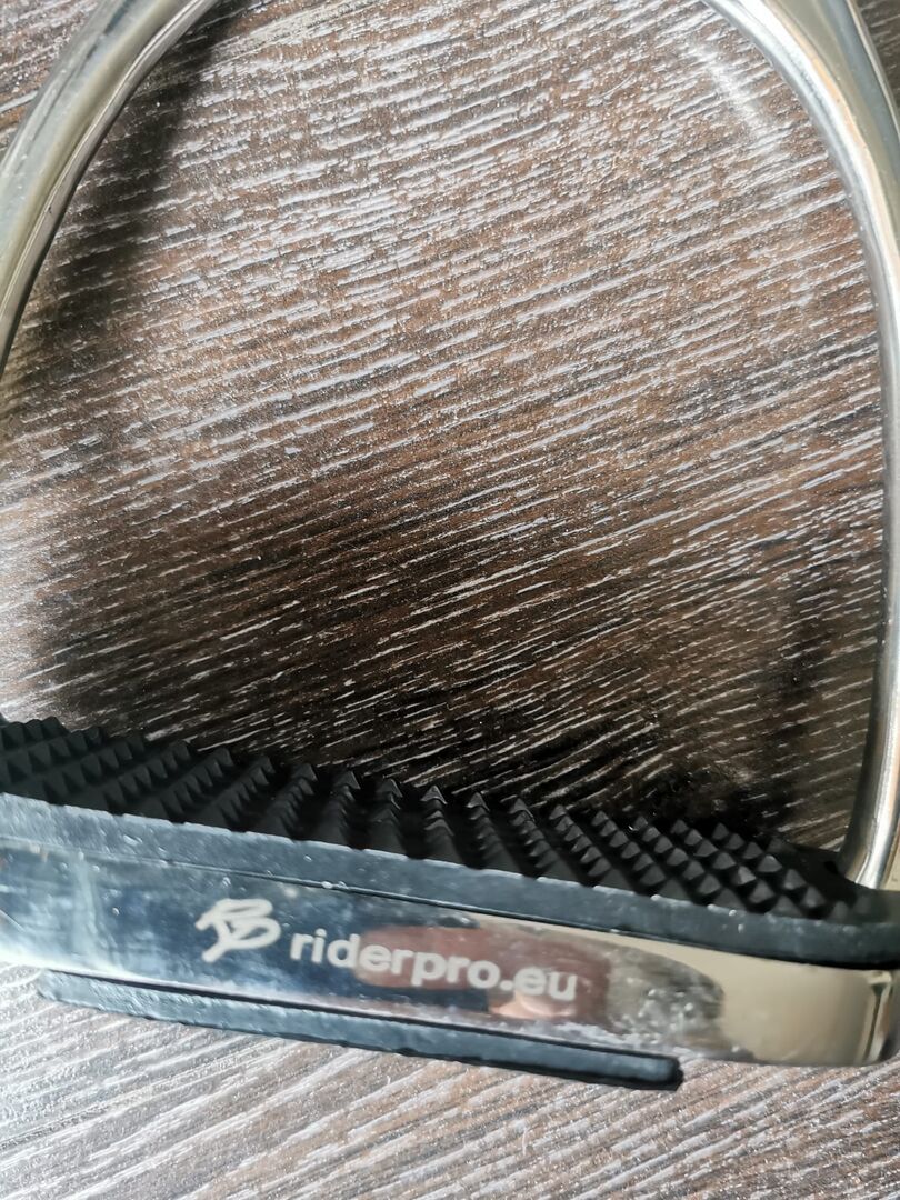 Stigbygelskinn 155 cm och stigbyglar i rostfritt stål 12 cm med stigbygelinlägg