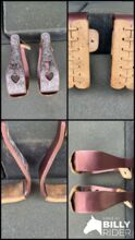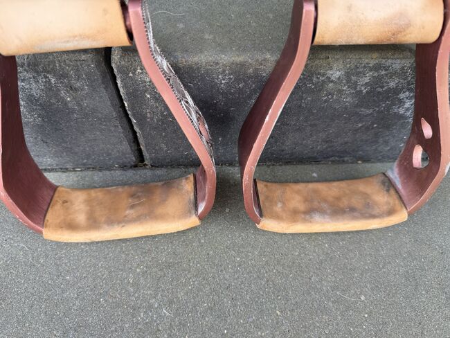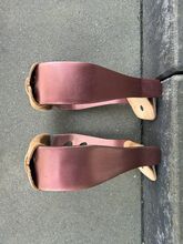 Mått på skon: Fri bredd (fotbredd): 5 1/2 tum = ca 14,0 cm Bredd/djup på fästets fotavtryck: 2 1/4 tum = ca 5,7 cm Bredd upptill för att rymma fenderremmen: 3 tum = ca 7,6 cm
