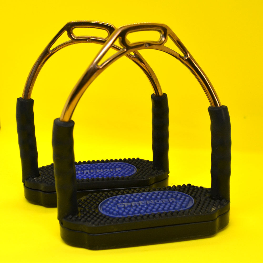 Stirrup Bow Balance - Sprenger Bow Balance säkerhetsstigbygel i färgen brons. Det beprövade systemet kan hjälpa till att frigöra foten vid ett eventuellt fall. Flexibiliteten avlastar ryttarens höfter, knän, vrister och vader. Böjd form för perfekt positionering och System 4-led för komfort och optimal säkerhet. Innersula med två olika gummihårdheter för bättre grepp, extra bred slitbana för optimal balans. Slitbana 12 cm Fullt funktionsduglig, knappt några tecken på användning. Originalfoto av objektet! Försäkrad frakt för € 4,50