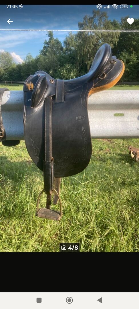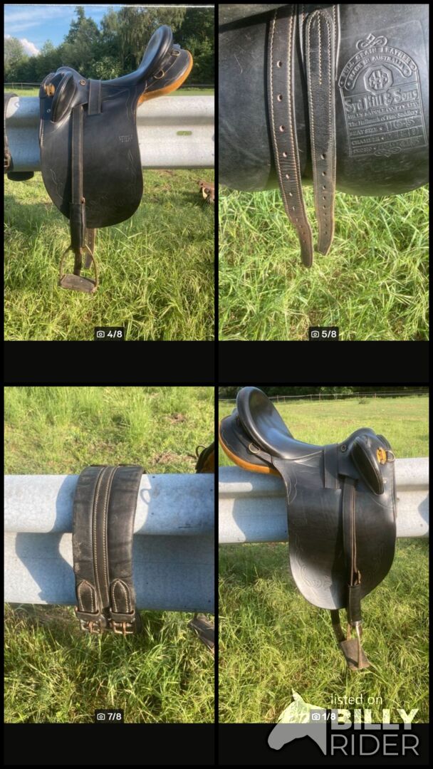 Stocksadel från Syd Hill inkl. lädergördel - Hej, tyvärr är mitt sto's sadel för stor. Sadeln är mer lämplig för stora hästar. Den har en medelstor bålbredd och är lämplig för hästar med manke. Vänligen kontakta mig om du är intresserad