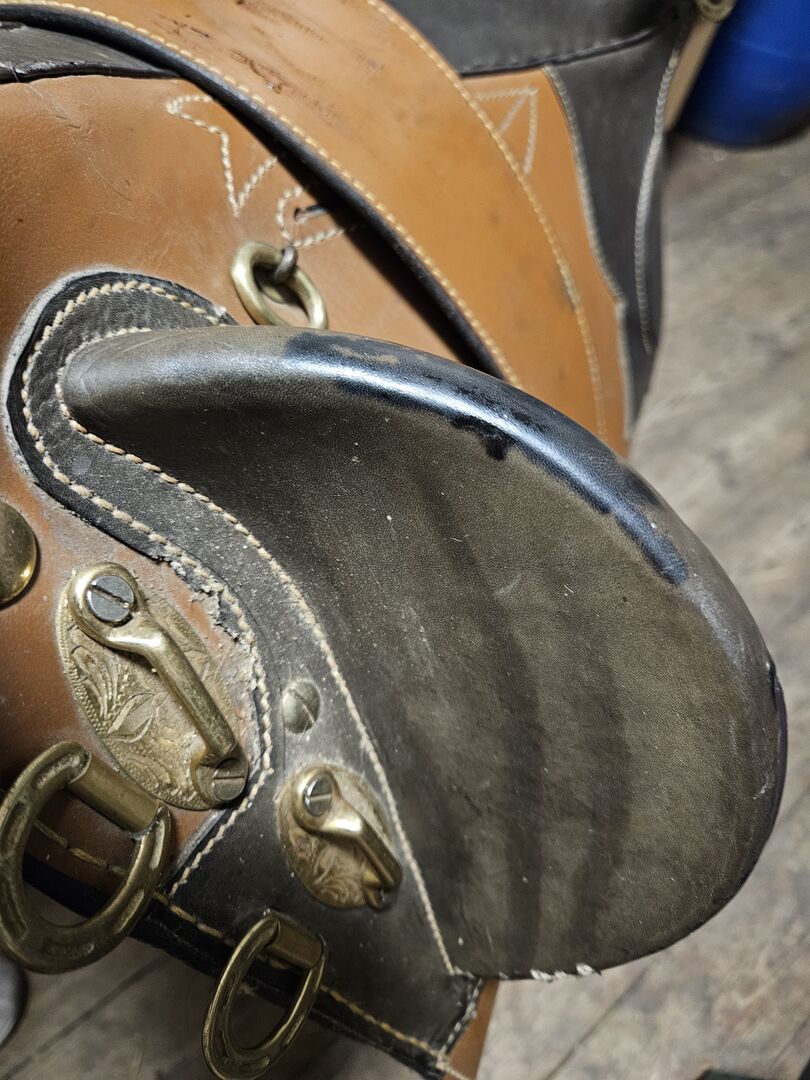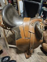 Stocksadel till salu - Jag säljer en stock sadel med sadelgjord och stigbyglar. Den användes sällan och samlar bara damm, så den är för bra för det. Den har tecken på användning som inte påverkar dess funktion.