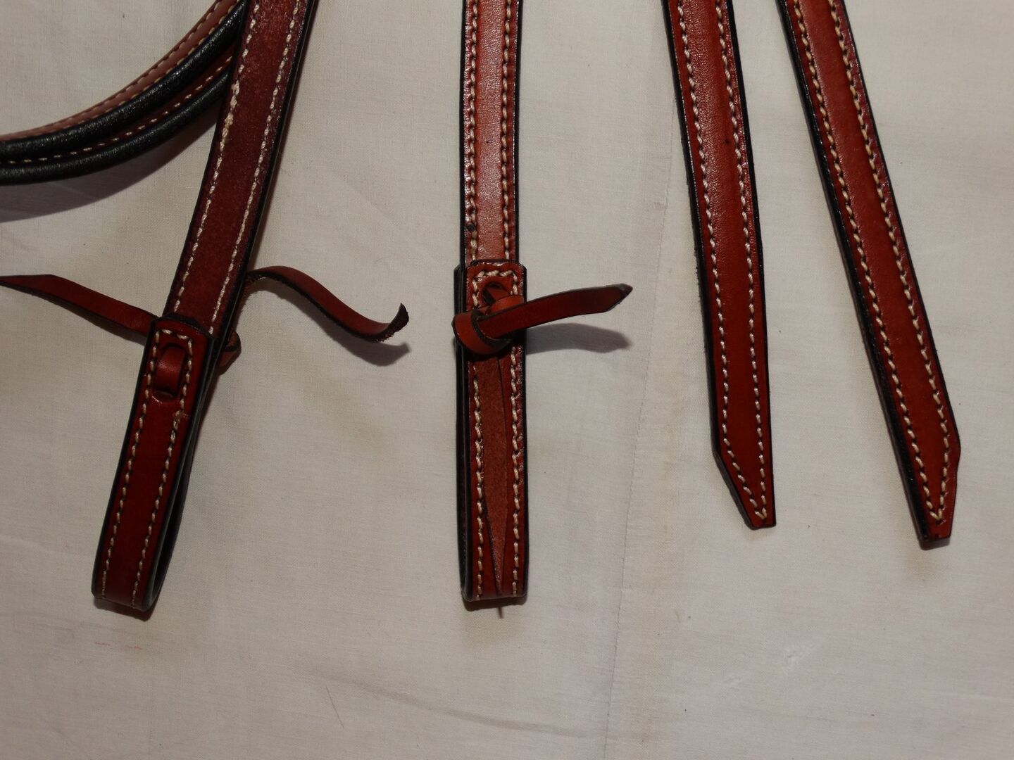 - Storlek: VB/COB/smal häst - Lädertyglar: ca 1,6 cm breda och 220 cm långa - Färg: Latigo - Hakrem: Standard Nypriset var över 100€. Vänligen se bilder för skick, tack!