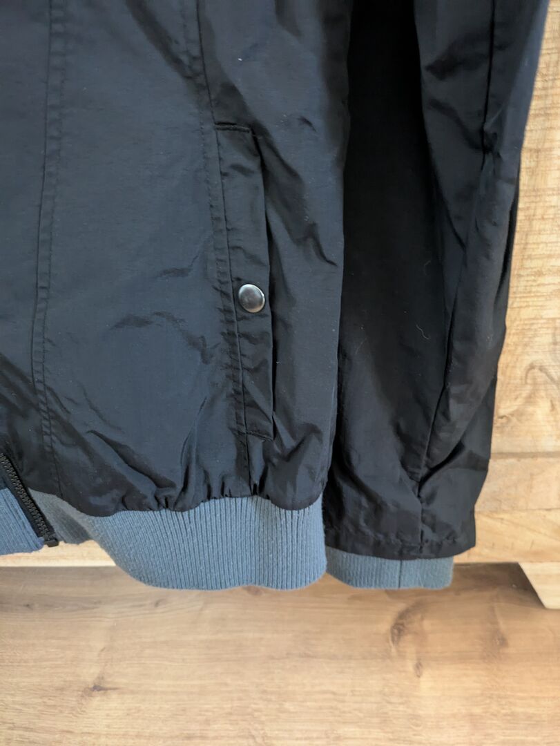 Lättviktsjacka från stonedeek, storlek M i svart. Med ribbad nederkant och muddar, snedställd dragkedja och fickor med tryckknappar, sweatmaterial på kragen och med dragsko. Broderi på framsidan och läderpatch på ärmen. Från första upplagan. Jag älskade att bära jackan, tyvärr passar den mig inte längre. I mycket gott skick och utan defekter. Skulle även byta till storlek L.