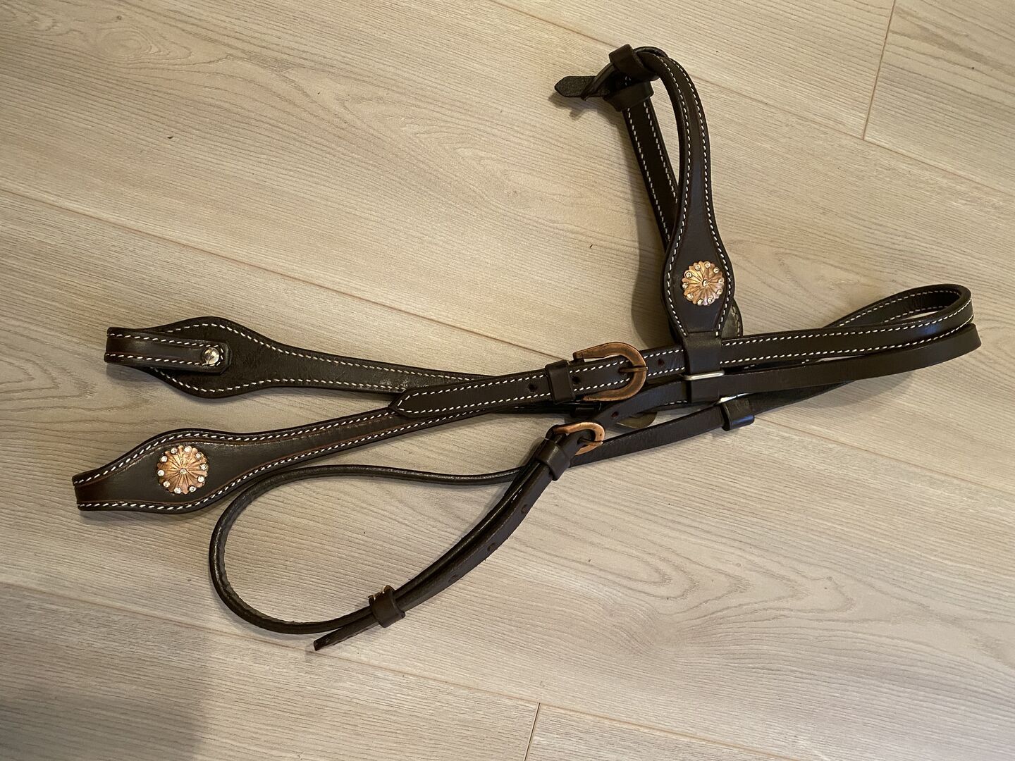 Stonedeek Western huvudbonad i mörkbrun - Knutet western-huvudstycke från Stonedeek i mörkbrunt. Har bara provats en gång.