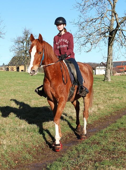 Han har en korrekt exteriör med mycket långa, raka ben och vackra flödande rörelser. Detta gör honom idealisk för uthållighets- eller trailridning eftersom han täcker mycket mark utan ansträngning och rör sig flitigt framåt utan mycket ansträngning. Han är alltid lätt att kontrollera i fält och är mycket rolig. Han tittar på alla förment läskiga saker, men han går alltid rakt förbi dem utan att tveka och till och med ett stort dike är inget problem för honom.