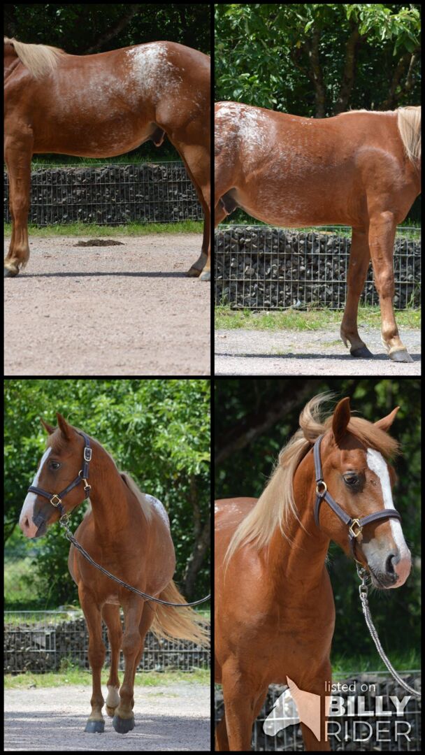 stor Quarter Horse/Appaloosa Pony mixhingst med intressant färgteckning - Söta Mando är redo att flytta in i sitt nya hem. Hans pälsmönster gör honom till ett absolut blickfång. Född den 3.2023 kommer hans beräknade slutliga längd att vara ca 140 -145 cm. Tack vare sin starka grund kommer han säkert att täcka vuxna senare. Mando kommer att växa upp i en flock, känner till fölets ABC såväl som hovslagaren och veterinären. Han är lite blyg i början, men detta avtar snart när du tillbringar lite tid med honom. Hingsten har en bra reiningstamtavla genom sin fader (Im A Rough Boy). Fadern är en Smart Chic Olena-son och var National Reining Champion 2023 på NRHA. Modern är en Appaloosa ponny utan stamtavla. Båda föräldrarna kan besiktigas på plats. Mando kommer att vara en fantastisk fritidspartner för western och cross-country. Plats: 66625 Nohfelden