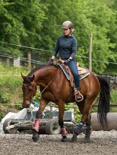 Stor Quarter Horse-valack i sin bästa ålder - Unik brun American Quarter Horse valack, hans namn är Hot Choc Revolution, han har en super stamtavla. V: Radical Revolution, MV: Chocolua både fadern och moderns far är världsmästare. Choc är 8 år gammal och mycket stark och orädd. När han rids svarar han fint på hjälperna och är mycket ridbar. Han kan också ridas bra av barn och svagare ryttare. Han är också pålitlig och säker i fält. Han är en drömhäst som är mycket bekväm att sitta på, utan några konstigheter eller fel. Han är i toppskick och mycket frisk. Chocho är 162 cm lång, har 5 paneler N/N, han har redan visats i Western och English Pleasure och Showmanship, och han har också deltagit i tävlingar. Han tävlade senast vid Europamästerskapen 2024. Han behärskar även högre rörelser såsom sidvärtsrörelser i alla 3 gångarter, flygande galoppombyten etc. Hans rang är ganska låg, men han kan både öppna stall och box. Chocho är fullt vaccinerad och regelbundet avmaskad. Han är hovslagar- och lastningsvänlig. Han kontrollerades också av osteo och befanns vara bra. Han är orädd och känner andra lantbruksdjur såväl som lekande barn och skällande hundar.