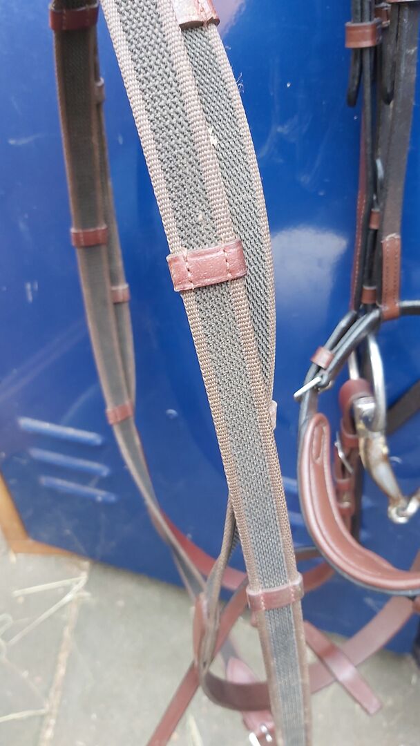 Gr. VB braune Trense mit blauen Verzierungen inkl Gurtzügel