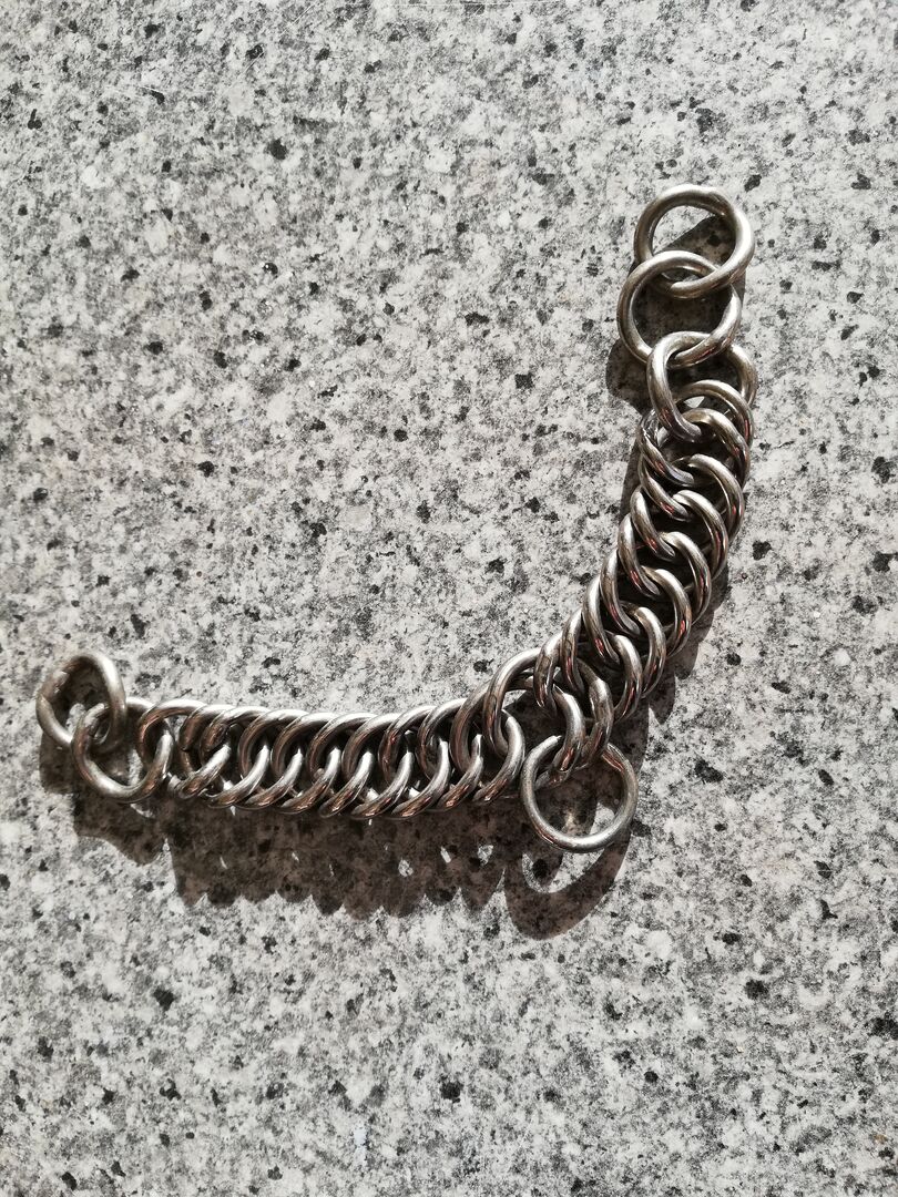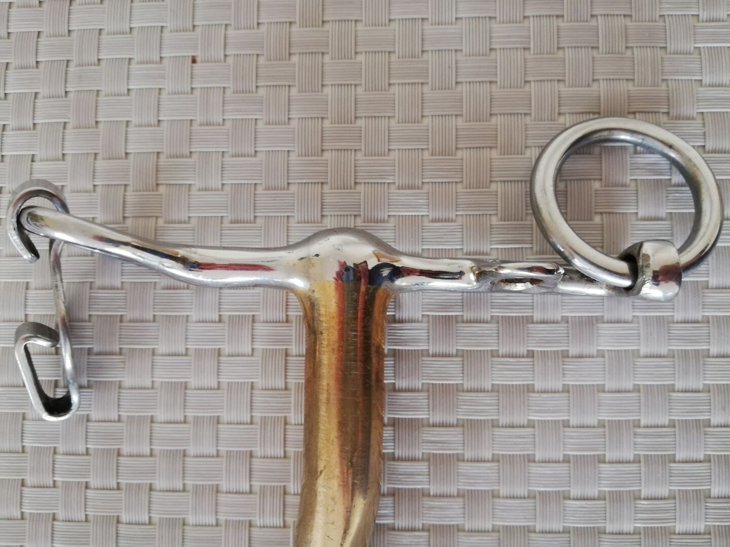 Stübben 14,5 curb bit REDUCED!!!! Dressyr - Säljer detta Stübben trottoarbett i 14,5 med hakkedja. Tången är 5 cm, tjockleken 14 mm. Munstycket är tillverkat av det "sweet copper"-material som Stübben är känd för. Den lätta tungspelet är lutat 30° framåt och fördelar på så sätt trycket optimalt på tungan och belastningen utan att tungan fastnar under bettet. Materialet är en speciell kopparblandning som ska smaka sött för hästar och som därför uppmuntrar dem att tugga. På grund av den söta smaken accepteras bettet mycket väl och den ökade salivationen bidrar också till ett harmoniskt förhållande mellan ryttare och häst. Privat försäljning utan retur/garanti. Ursprungligt pris 139- 149 euro. Här finns ett begagnat men välbevarat exemplar till salu till ett lägre pris.