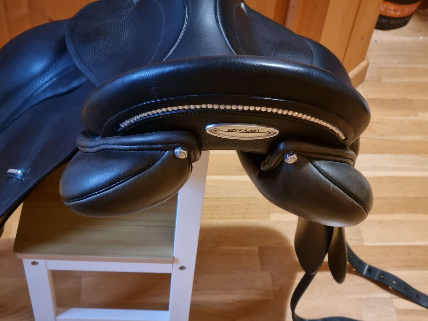 Stübben Jeventus "Glitter - Jag säljer min dressyrsadel Stübben Jeventus "Glitzer" Design 17 tum. Den ursprungliga bredden var 31 men ändrades till 33 av sadelmakaren. Sadeln är 3 år gammal och i toppskick.