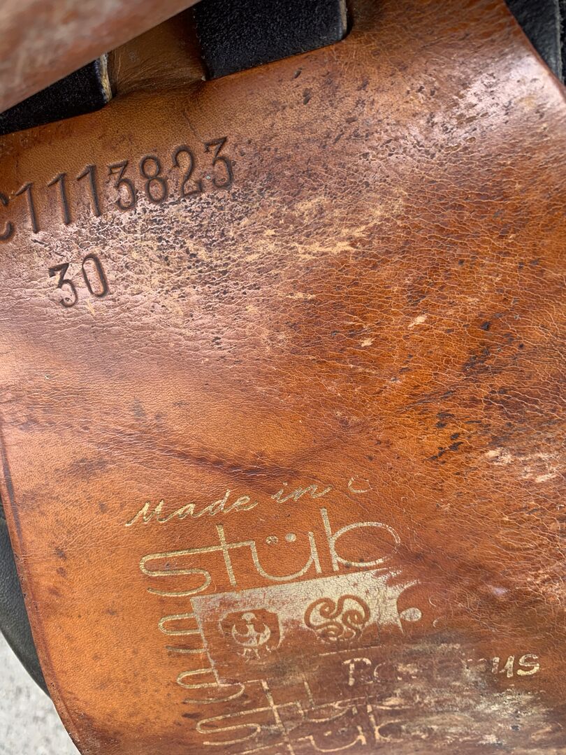 Stübben Romanus CL hoppande sadel - Begagnad hoppsadel. Läder och tyglar är i gott skick. Sätesstorlek tror jag är 17 tum, bredd 30 tum.