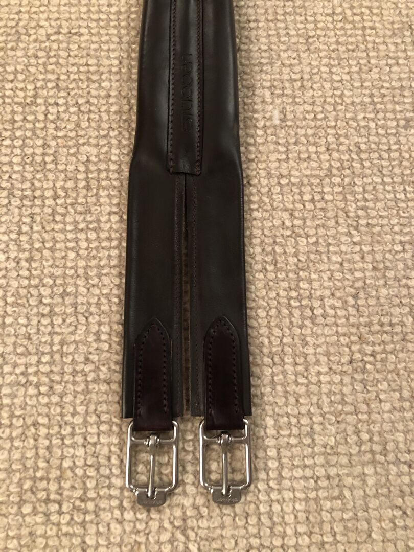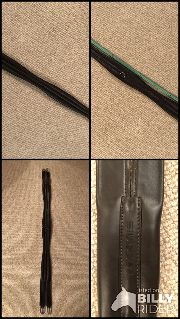 Stübben Saddle Girth - Sadelgjord i läder, anatomisk form, elastisk på ena sidan, sadelgjord använd ca. 5 gånger, längd 135 cm, färg mörkbrun, pris plus frakt