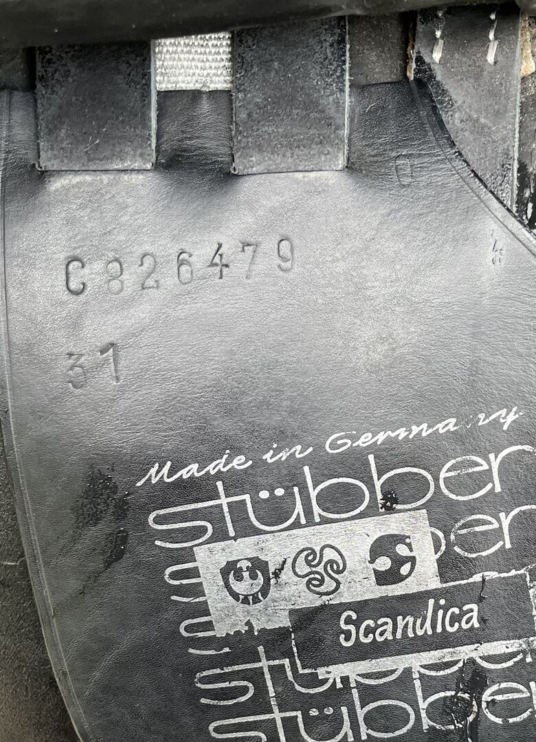 STÜBBEN SCANDICA är tillverkad av älgläder och UTAN skador eller revor. Remmarna är alla intakta och stoppningen är ok. Lädret är mycket slitstarkt och ger ryttaren extra stöd i sadeln. Sadelträdet i stål är mycket hållbart. Modellen har skurna sadelklaffar för mer axelfrihet, bred sadelmynningskanal, korta, breda paneler. Sadeln har en 31 mm gylf och en 17,5 mm sits och passar både ponnyer och stora hästar. Magsäcksplattan kan justeras av sadelmakaren.