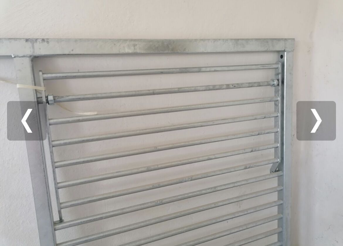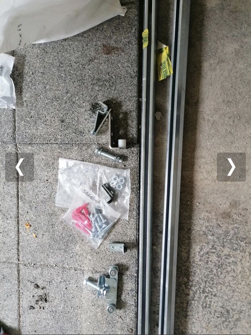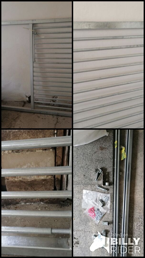 Säljer nya skjutdörrar för montering framför en väggöppning som en båsdörr. Med andra tillbehör är det möjligt att montera på lådans framsida eller i taket. Det finns två dörrar, vardera med 3 meter skena för väggmontering och alla monteringsdelar inklusive skruvar. Träpanelen av Douglasgran i 38 mm tjocklek för den nedre delen ingår. Den övre halvan består av ett galler med ett öppningsbart "fönster" så att hästarna kan titta ut. 140 cm bred och 230 cm hög. Standardmodell. Hjälp kan ges med lastning. Finns tillgänglig omgående. Normal leveranstid 12 veckor. Dörrarna är nya eftersom vi har ombokat under leveransperioden. Pris per dörr Samling