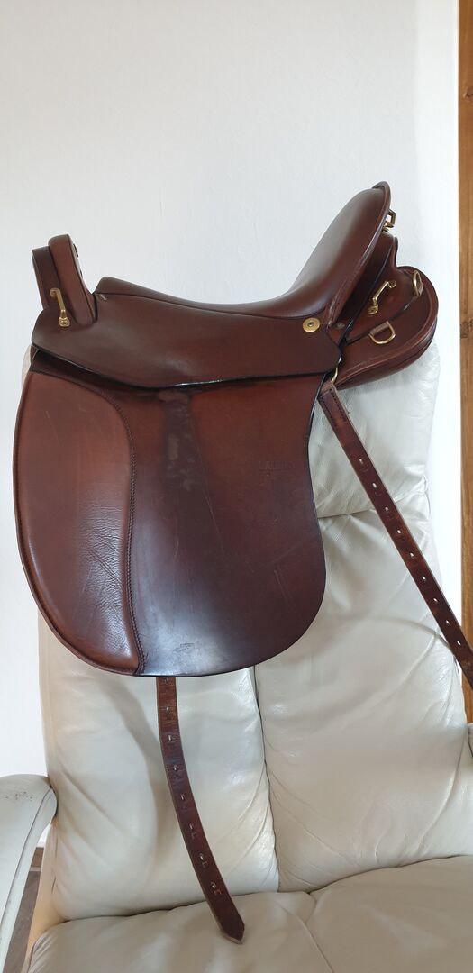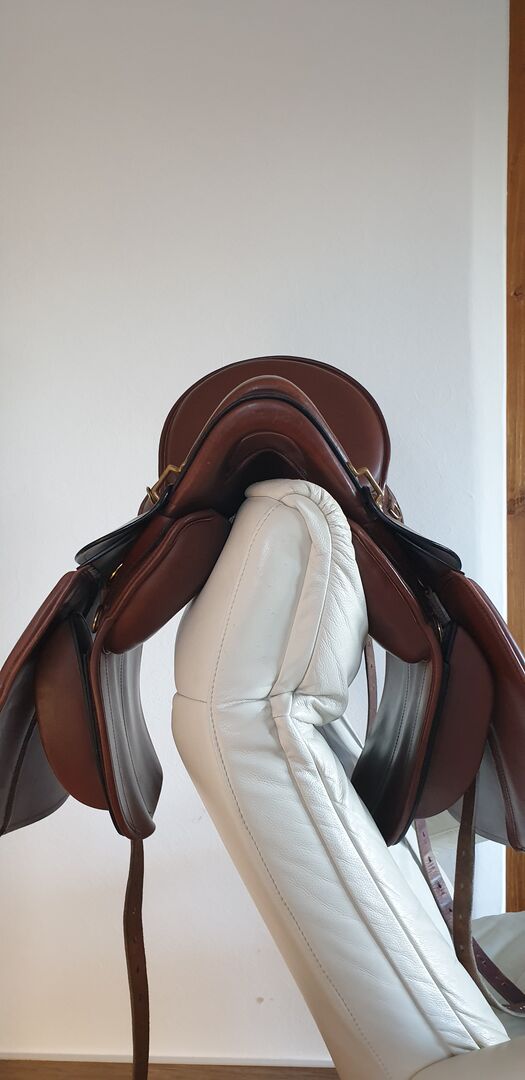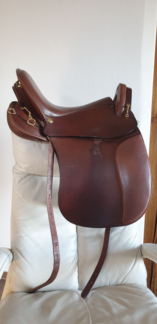 Summer Evolution compact Trail Riding Saddle - Säljer en ridsadel/trailridsadel från Sommer Evolution compact. Till salu är en välbevarad ridsadel av märket Sommer. Sommer Evolution Compact nr: 0749557 Tillverkningsår: okänt Koordinater för denna sadel: - Trädstorlek: 16.0" - Sätesstorlek: 18,0" uppmätt, enligt tillverkaren: 18,0". - Färg: cognac-brun Kammarbredd: - Kammarbredd: 30,0 cm - Trädens bredd: 30,0 cm - Platsbredd: 18,0 cm - Kuddkanal: ca 8,0 cm = 4 fingrar bred Kontaktyta för sadeln: 47 cm (Mätt av certifierad hästergonom) Rekommendation: Den här sadeln är lämplig för hästar med medelbred ryggrad och en kotbredd på max 4 fingrar vid övergången till panelkanalen och den korta kontaktytan. Hästar/ponyer med en relativt kort kontaktyta på max 47 cm är lämpliga. Kammarbredden är uppmätt till 30,0 cm och kan ändras.