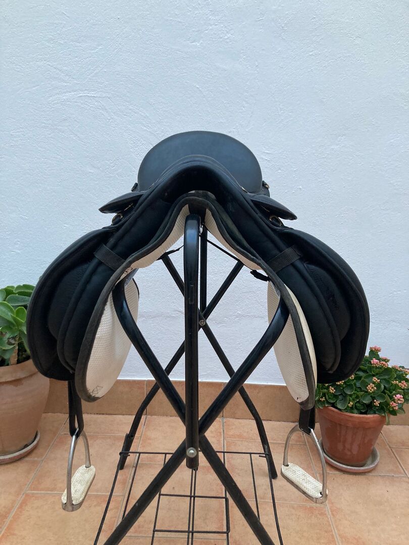 Svart Albion 17,5" WX - Mount med aktier säljs med band, stigbyglar och hästtröja. Som ny montering. Mycket lite använt.