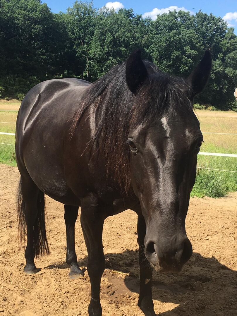 svart, barnkärt Quarter Horse-sto - Eftersom ägarens personliga omständigheter tyvärr har förändrats letar denna vackra svarta skönhet efter ett 5-stjärnigt hem med tungt hjärta. Dakota föddes 2010 och är 152 cm lång. Stoet är starkt och kompakt och bor med 4 andra ston i ett öppet stall. Men känner också till en blandad besättning. 7-panel n/n. Det här stoet är en riktig älskling. Alltid snäll, med en riktigt bra karaktär. Hon älskar även barn och är helt orädd. Dakota rids på fritiden, har inte visats och kan inte göra några manövrar. Hon ska helt enkelt vara en fantastisk partner i hagen, för många avslappnade timmar. Har även ridits av barn. Dakota är också mycket intressant för avel på grund av sina fina papper. Hon är registrerad i stamboken. Hennes far är Swappin Ends Doc, en Smart Little Lena-son. Dakotas mamma är en Dry Cricket-dotter. Hennes vackra svarta 2-åriga dotter är också till salu. Dakota kommer endast att säljas till de allra bästa händerna. Tillbehör kan köpas på begäran.