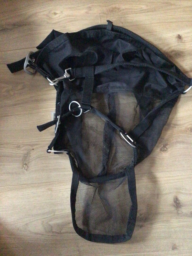 Svart halster med gylfskydd - Hej:) Jag säljer ett svart halster med flugskydd. Storlek VB. Den är oanvänd och intakt. Om du har några frågor är du välkommen att kontakta mig:)