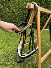 Detaljer om bettet: - Märke: Waldhausen - Storlek: Varmblod - Skick: mycket bra / knappt använt - Användning: ca 10× - Leverans: utan bett, med tyglar - Färg: svart
