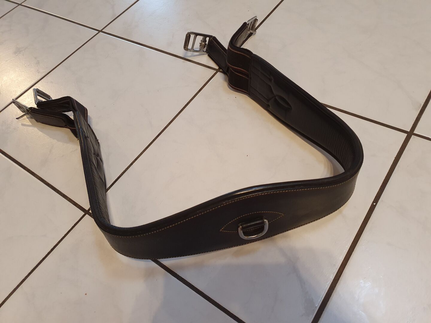Svart läder sadelgjord 120 cm, toppskick - Jag säljer min mycket lite använda men alltid välskötta svarta lädergrimma i 120 cm längd. Hästen har gått upp i vikt för snabbt och den passar inte längre. Elastiska remmar och rullspännen på båda sidor, en ring i mitten för extra tyglar. Inga sprickor i lädret, ingen rost eller skavt gummi.