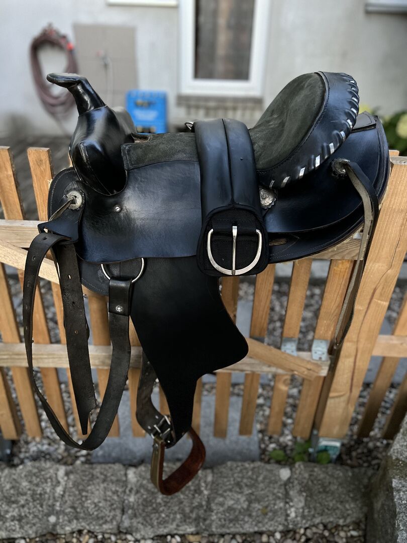 svart western-sadel - Jag säljer min western-sadel eftersom jag inte längre behöver den. Den användes på ett rhenländskt warmblood.
