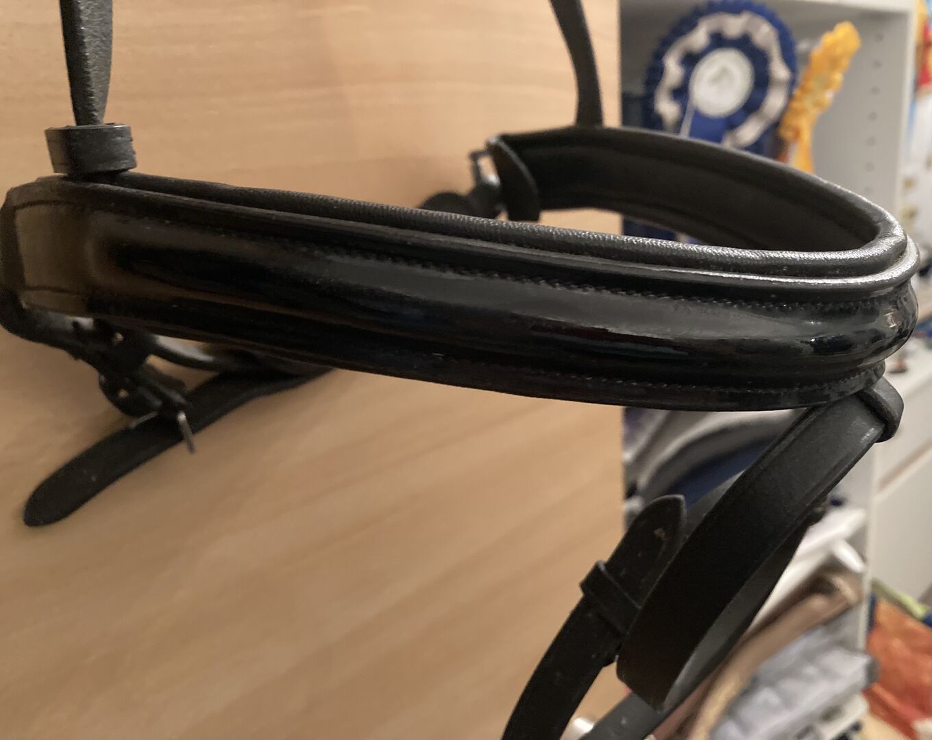 Svensk kombinerad Caveson Soft & Lacquer - Mjukt vadderad, näsband med spänne och beslag i rostfritt stål med patenterat näsband. Storlek Full