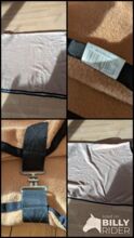 svettmatta fleece beige 155 - Skick som visas på bilderna. Den var sydd på 2 små ställen, jag hade funderat på att sy fast stjärnor där, då ser man det inte, men den passar inte min häst så bra, så jag gjorde det inte. De sydda områdena kan ses på bild 4 och 6 och naturligtvis på de stora bilderna.