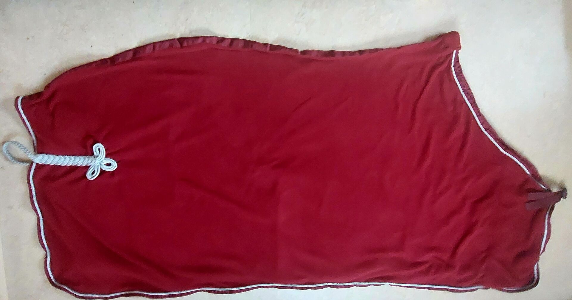 Sweat Rug Bordeaux - Jag säljer här en begagnad svettmatta i storlek 155cm. Den har små defekter eftersom det andra paret spännen var tvungna att klippas av, det är därför den är så billig att sälja. Betalning gärna via PayPal.