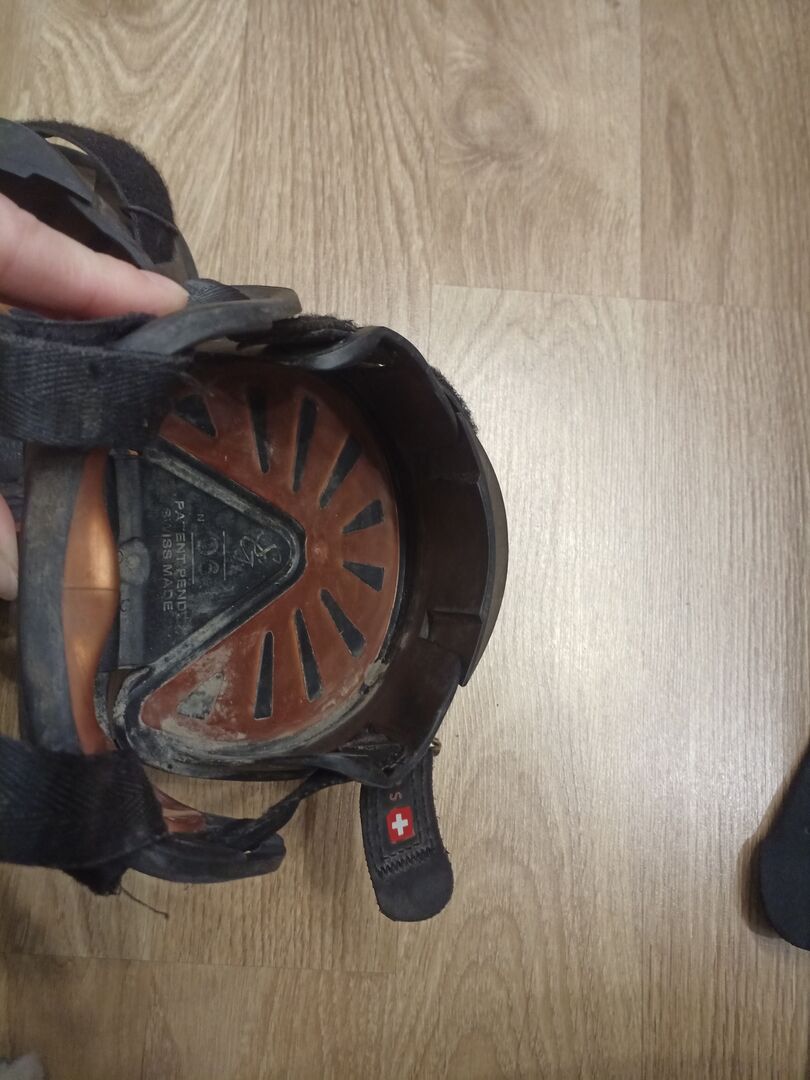 Skorna har INGA FEL, det är bara fotsulans remmar som kan bytas ut vid behov. Ett gummiband för bättre grepp skulle också göra susen.