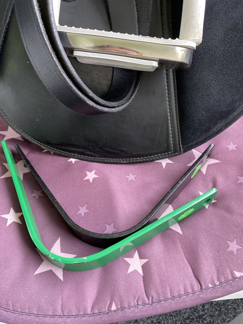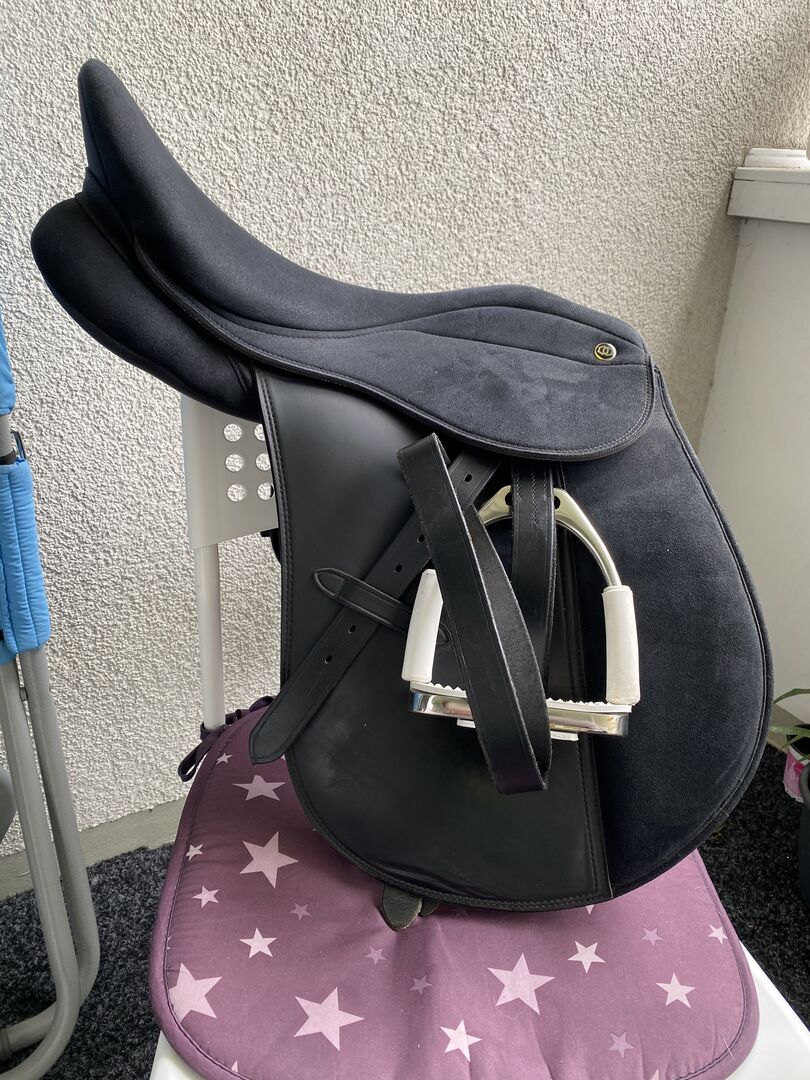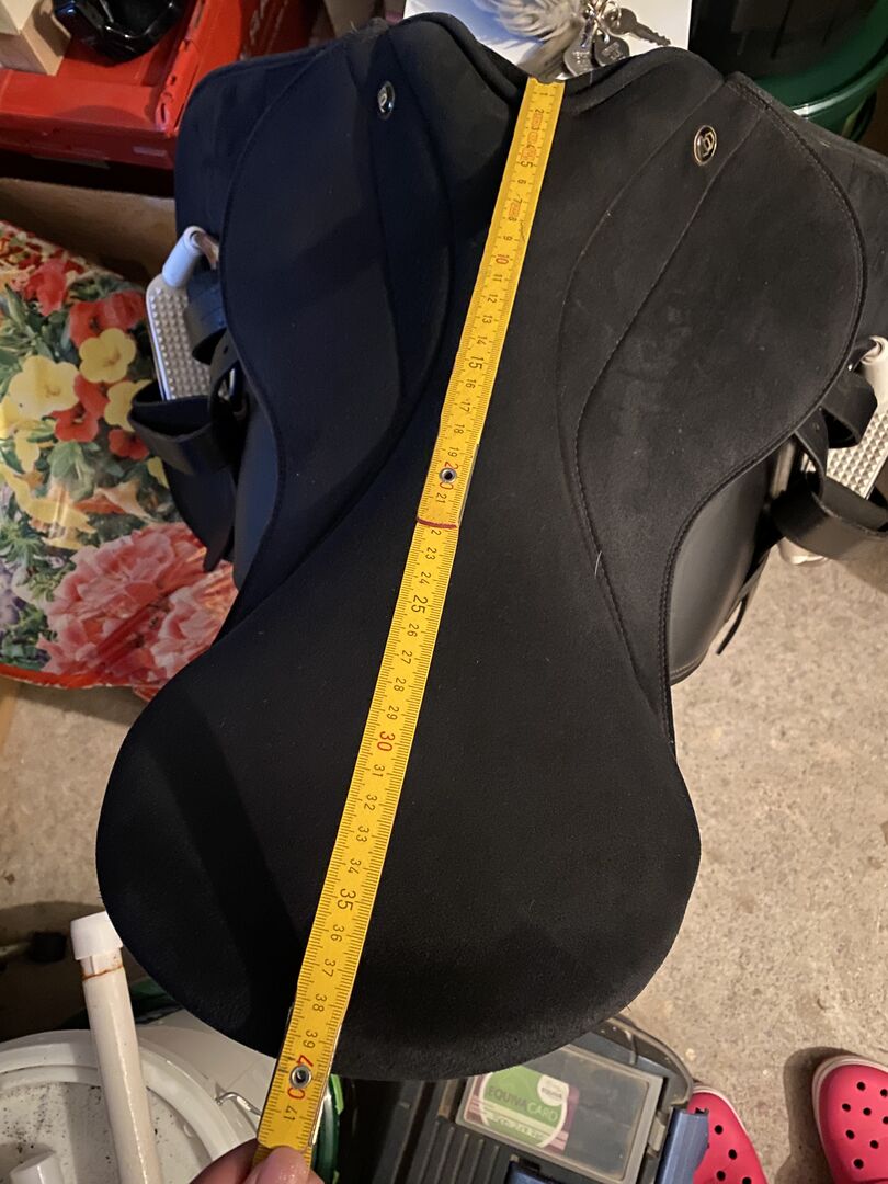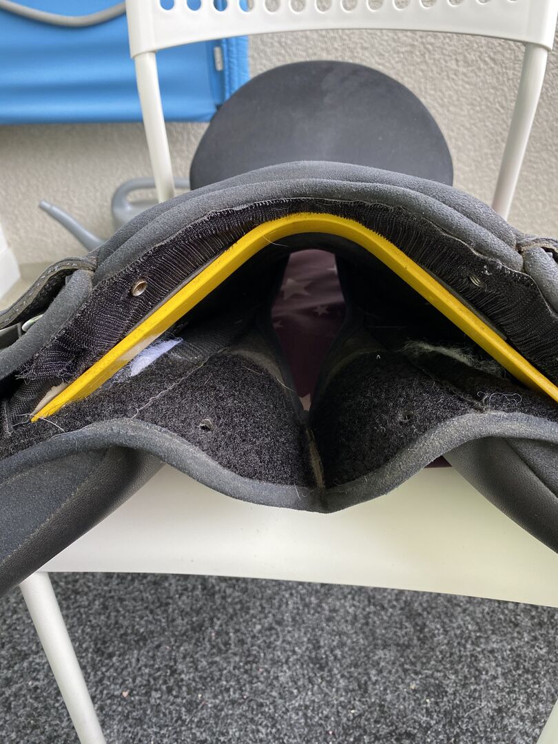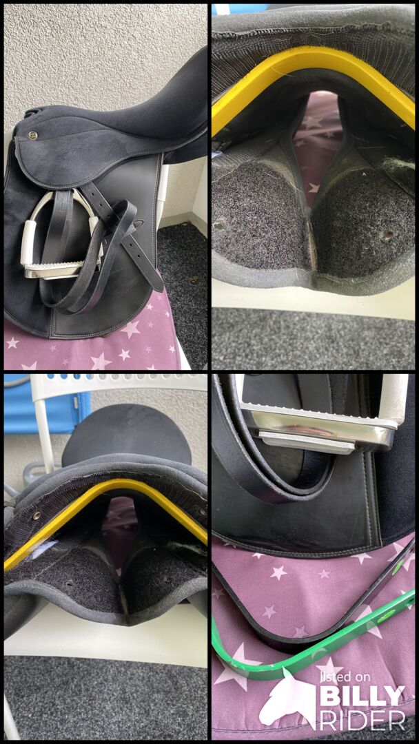 Sylka sadel 16,5 tum - Hej, Jag säljer min Sylka-sadel, jag köpte den själv begagnad. Den har varit på min häst max. 10 gånger. Jag ger bort den eftersom min ponny är för bred för den. Den är verkligen bra för att lära sig. Jag säljer sadeln med säkerhetsbyglar, stigbygelremmar och 2 extra gummiband, men utan grimma. Jag vet inte varför omkretsen är trasig (på insidan). Jag märkte det själv först när jag ville byta matosplattan för första gången.