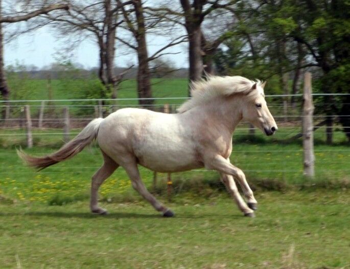 Sympatiskt sto för avel - Flugfjöður från Sölvholti Stoet från 2017 Färg: Isabell Utbildningsnivå: utbildad, känner till ryttarens vikt