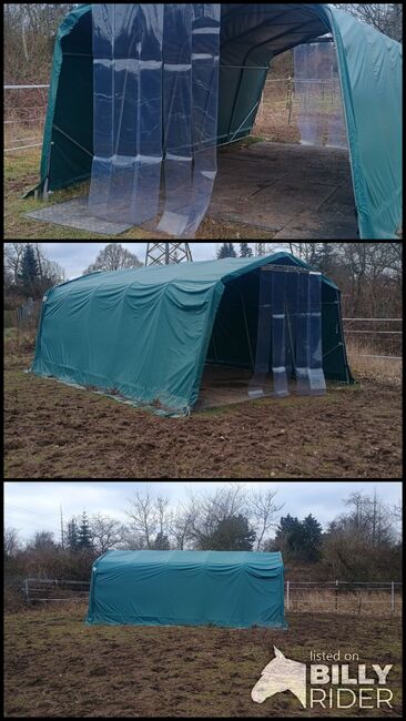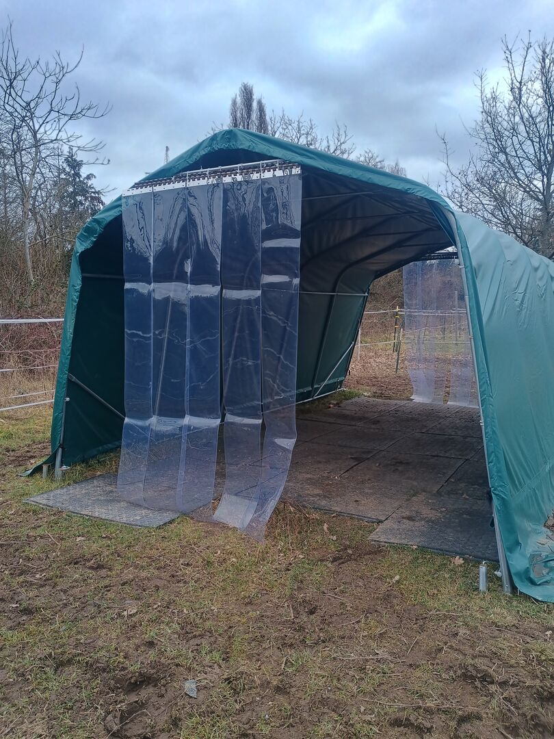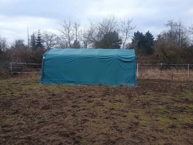 Tält för betesmark 3,30m x 6m inkl. stormset - Vi säljer vårt betesmarkstält eftersom vi inte längre behöver det. Det är bara 6 månader gammalt och har verkligen bara minimala tecken på användning - totalt sett mycket bra skick.