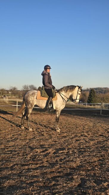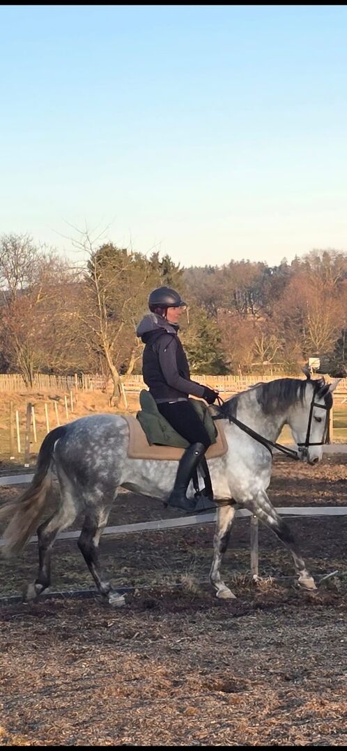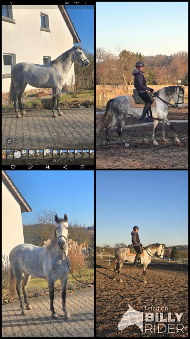 Talangfull förstagångshoppa - Vi säljer ett vackert andalusiskt sto. Tormenta är 8 år gammal och har en längd på 1,60 meter. Hon är mycket ridbar oavsett om det är på fältet eller på arenan. Tormenta är ett sto som vill vara alla till lags under sadeln och hon visar det. Vi har börjat rida henne i sidvärtsrörelser, vilket hon lär sig väldigt snabbt. Hon är i början av sin ridkarriär och jag tror att hon skulle passa bra som arbetshäst men också som en exklusiv fritidshäst. Tormenta bor hos oss i ett öppet stall i en blandad flock. Om hon har väckt ditt intresse så skriv till mig eller ring mig på 0163 9840641 så kan jag svara på ytterligare frågor du kan ha