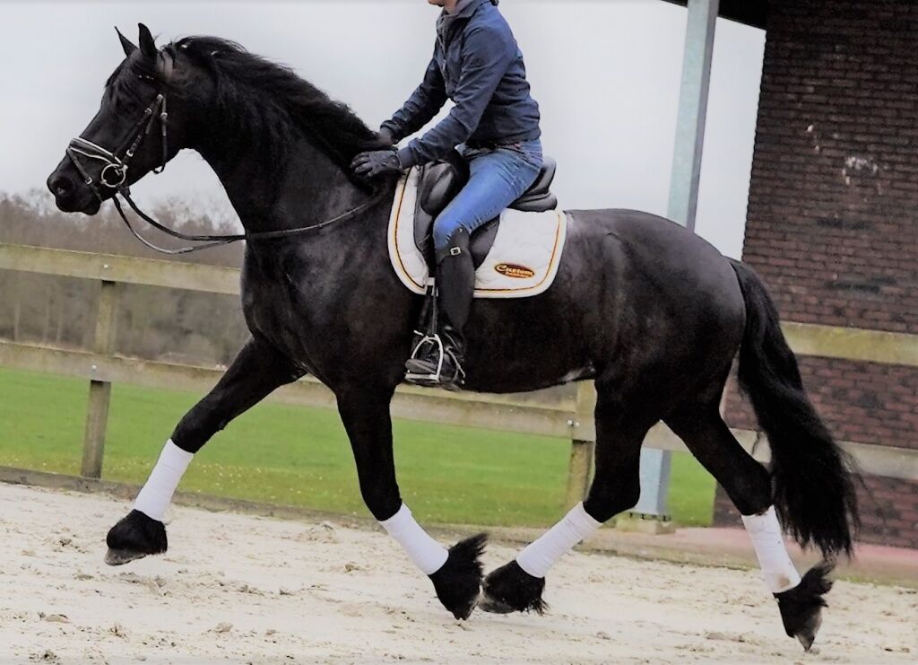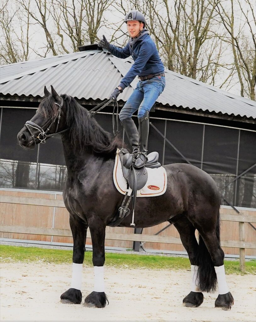 Hier ist ein leicht zu reitender, unkomplizierter Friesen, der sich sogar für kleine Kinder oder Ihre Oma eignet, zu einem fairen Preis. Eine großartige Gelegenheit, einen 7-jährigen, hervorragenden Reit- und Fahrhengst zu erwerben, der groß, gutaussehend und ein echtes Multitalent ist. Theo ist ein sehr erfahrenes Pferd. Superlieb – er folgt Ihnen auf Schritt und Tritt wie ein Hund.